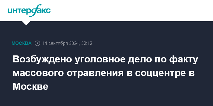 Возбуждено уголовное дело по факту массового отравления в соццентре в Москве