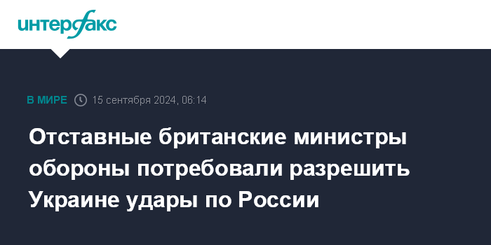 Отставные британские министры обороны потребовали разрешить Украине удары по России