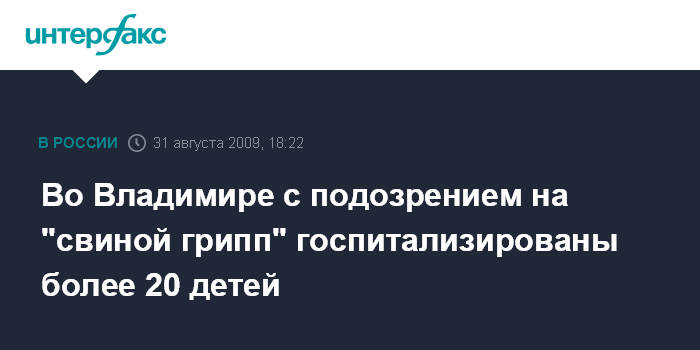 Во Владимире с подозрением на "свиной грипп" госпитализированы более 20 детей