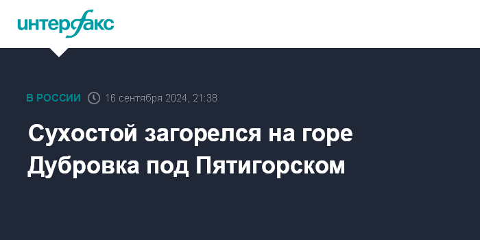 Москва. 16 сентября. INTERFAX.RU - Трава загорелась на склоне горы Дубровка в окрестностях города-курорта Пятигорска (Ставропольский край) в понедельник вечером, сообщает пресс-служба краевого управления МЧС России.