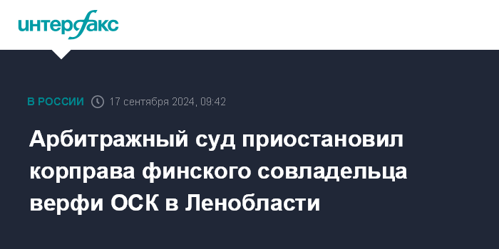 Арбитражный суд приостановил корправа финского совладельца верфи ОСК в Ленобласти