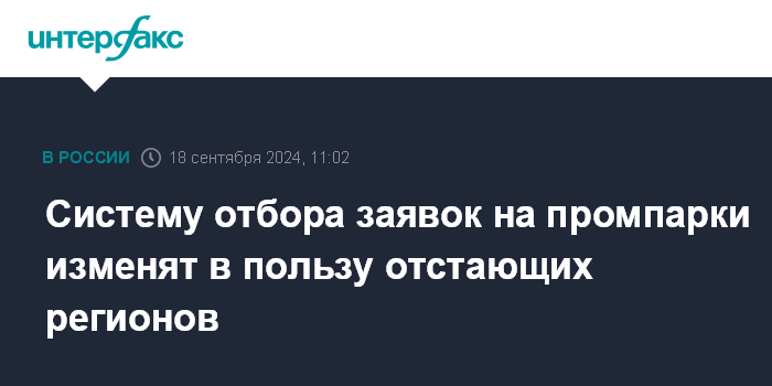 Систему отбора заявок на промпарки изменят в пользу отстающих регионов