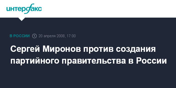 "Я против партийного правительства в принципе, я считаю, что у нас президентская республика, все решения принимает президент, а правительство должно состоять из профессионалов", - сказал С.Миронов "Интерфаксу-АВН".