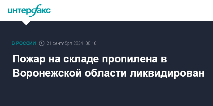 Пожар на складе пропилена в Воронежской области ликвидирован