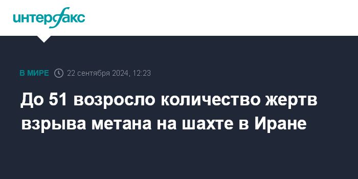 Ранее в воскресенье иранское агентство IRNA сообщило о не менее 30 погибших горняках в результате взрыва на шахте. По данным агентства, спасти удалось 17 человек, они с различными травмами помещены в больницы.