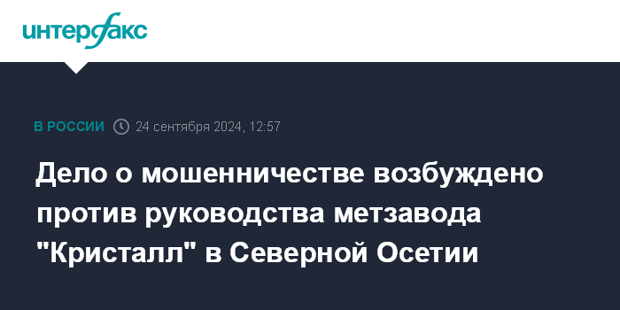 Дело о мошенничестве возбуждено против руководства метзавода "Кристалл" в Северной Осетии