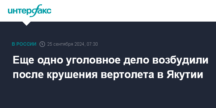 Еще одно уголовное дело возбудили после крушения вертолета в Якутии