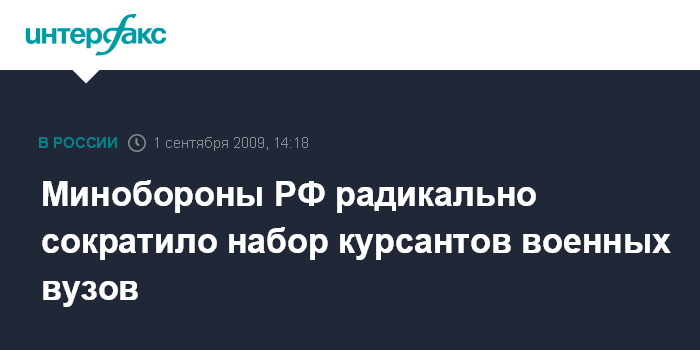 Москва. 1 сентября. INTERFAX.RU - Заказ на подготовку офицеров в вузах Минобороны РФ в 2009 году уменьшился примерно в шесть раз по сравнению с прошлыми годами, сообщил во вторник "Интерфаксу-АВН" представитель российского военного ведомства.