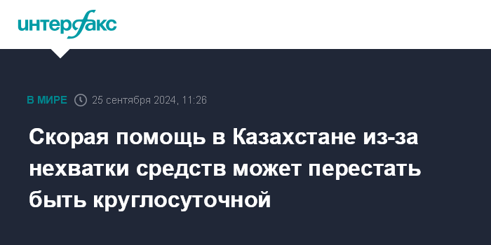Москва. 25 сентября. INTERFAX.RU - Минздрав Казахстана из-за недостаточного финансирования предлагает внести изменения в правила оказания скорой медицинской помощи, согласно которым бригады врачей для пациентов с острыми и хроническими заболеваниями будут приезжать только в будние дни и с 8:00 до 18:00.