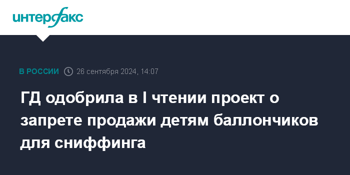 "Ранее Госдума уже приняла законы, запрещающие продажу закиси азота - "веселящего газа" - не в медицинских и промышленных целях, а также ввела административную ответственность за пропаганду его употребления. Теперь мы принимаем поправки, которые вводят запрет на продажу несовершеннолетним потенциально опасных газосодержащих товаров бытового назначения, содержащих сжиженные углеводородные газы", - сказал ранее председатель Госдумы Вячеслав Володин.
