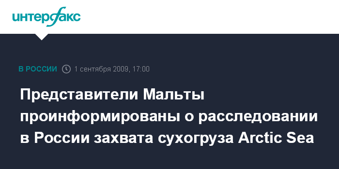 Представители Мальты проинформированы о расследовании в России захвата сухогруза Arctic Sea