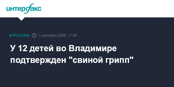 Владимир. 1 сентября. INTERFAX.RU - У 12 из 23 владимирских школьников, госпитализированных с подозрением на "свиной" грипп, обнаружен вирус А/H1N1, сообщил в понедельник "Интерфаксу" представитель областного Роспотребнадзора.