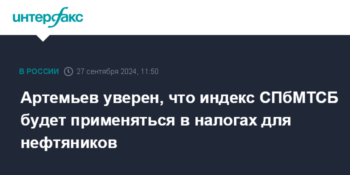 Артемьев уверен, что индекс СПбМТСБ будет применяться в налогах для нефтяников