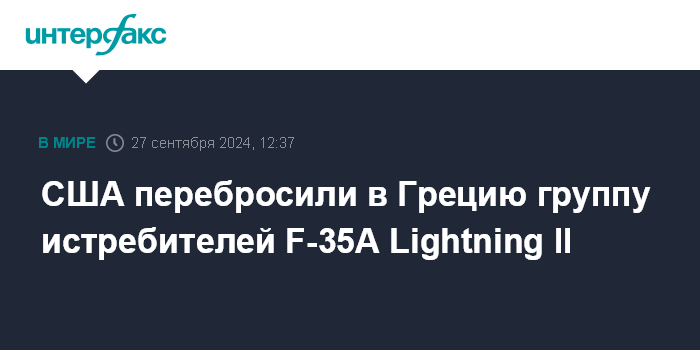 США перебросили в Грецию группу истребителей F-35A Lightning II