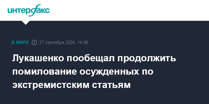 Лукашенко пообещал продолжить помилование осужденных по экстремистским статьям