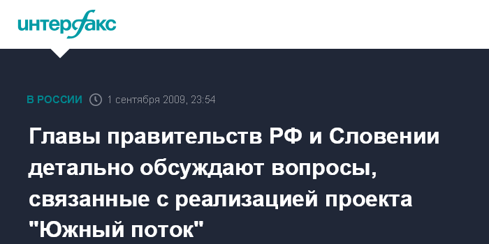 Главы правительств РФ и Словении детально обсуждают вопросы, связанные с реализацией проекта "Южный поток"