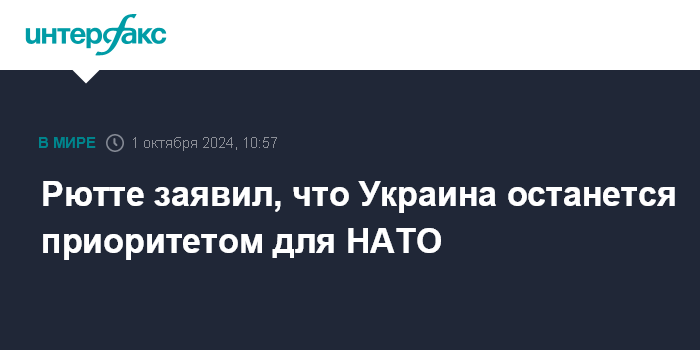 Москва. 1 октября. INTERFAX.RU - Следующий генсек НАТО, экс-премьер Нидерландов Марк Рютте во вторник пообещал, что помощь Украине останется приоритетом для Североатлантического альянса.