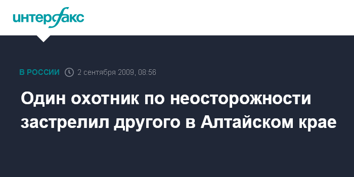Москва. 2 сентября. INTERFAX.RU - Житель Залесовского района Алтайского края предстанет перед судом за то, что по неосторожности застрелил во время охоты другого охотника.