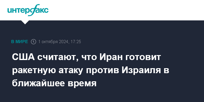 Москва. 1 октября. INTERFAX.RU - США получали данные, согласно которым Иран готовится в скором времени запустить по Израилю баллистические ракеты, сообщает во вторник CNN со ссылкой на неназванного высокопоставленного чиновника из Белого дома.