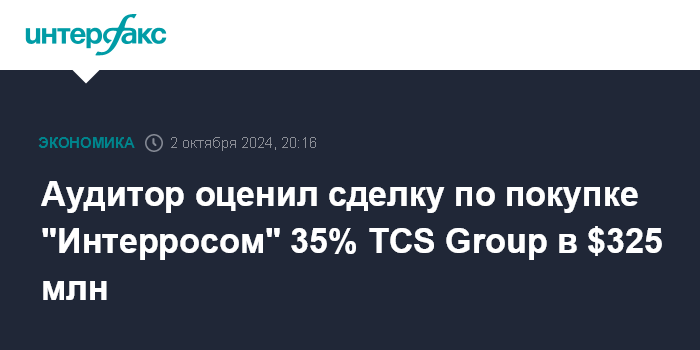 Аудитор оценил сделку по покупке "Интерросом" 35% TCS Group в $325 млн