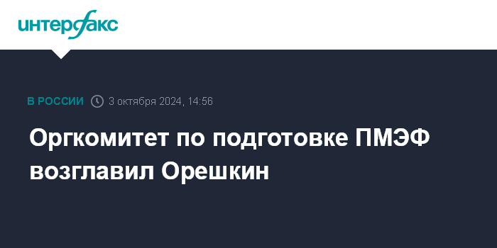 Москва. 3 октября. INTERFAX.RU - Замглавы администрации президента РФ Максим Орешкин назначен председателем оргкомитета по подготовке и проведению Петербургского международного экономического форума.