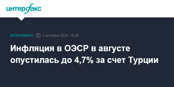 Инфляция в ОЭСР в августе опустилась до 4,7% за счет Турции