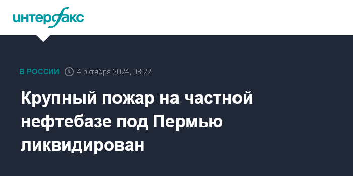 Крупный пожар на частной нефтебазе под Пермью ликвидирован
