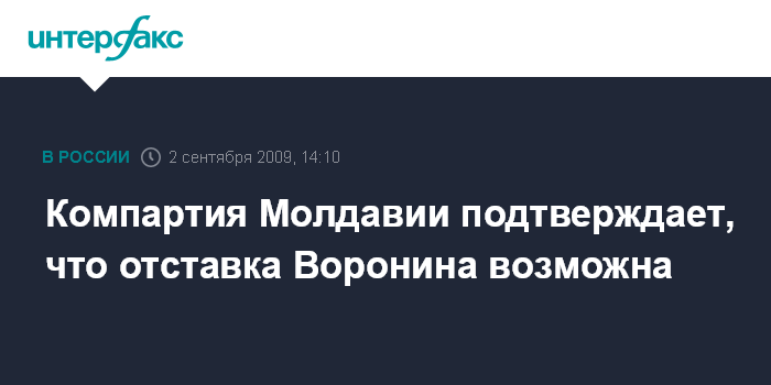 Кишинев. 2 сентября. INTERFAX.RU - Партия коммунистов Молдавии официально не подтвердила информацию о том, что Владимир Воронин заявил о предстоящем сложении с себя президентских полномочий.