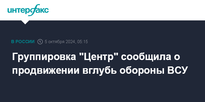 Группировка "Центр" сообщила о продвижении вглубь обороны ВСУ