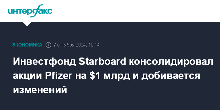 Инвестфонд Starboard консолидировал акции Pfizer на $1 млрд и добивается изменений