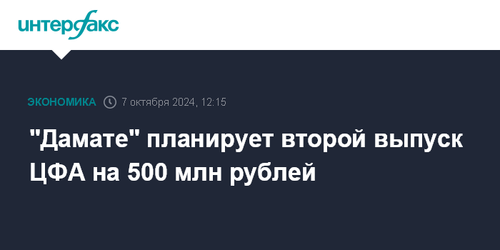 "Дамате" планирует второй выпуск ЦФА на 500 млн рублей