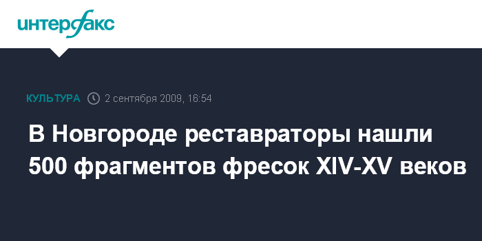 Москва. 2 сентября. INTERFAX.RU - На месте разрушенного храма Архангела Михаила в Новгороде реставраторы нашли 500 фрагментов старинных фресок.