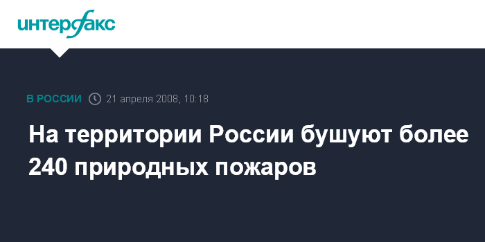 Москва. 21 апреля. INTERFAX.RU - В России растет количество природных пожаров, сообщает Управление информации МЧС России.