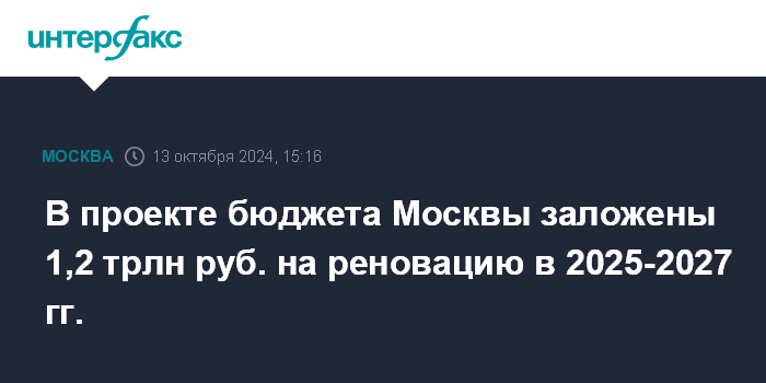 В проекте бюджета Москвы заложены 1,2 трлн руб. на реновацию в 2025-2027 гг.