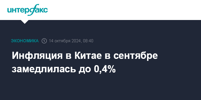 Инфляция в Китае в сентябре замедлилась до 0,4%