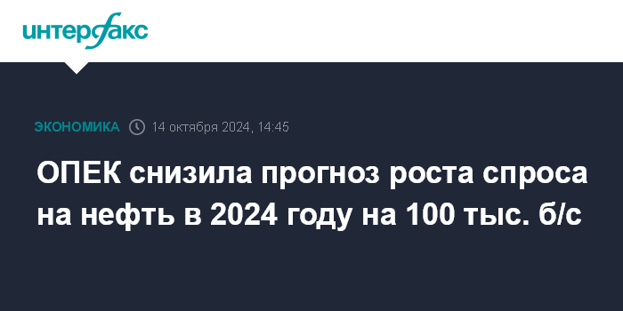 ОПЕК снизила прогноз роста спроса на нефть в 2024 году на 100 тыс. б/с