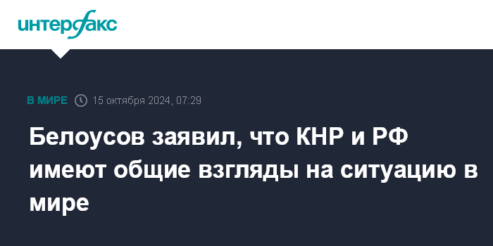 Белоусов заявил, что КНР и РФ имеют общие взгляды на ситуацию в мире