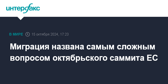 Москва. 15 октября. INTERFAX.RU - Самой чувствительной дискуссией саммита Евросоюза 17-18 октября высокопоставленный европейский чиновник назвал обсуждение миграционного вопроса.