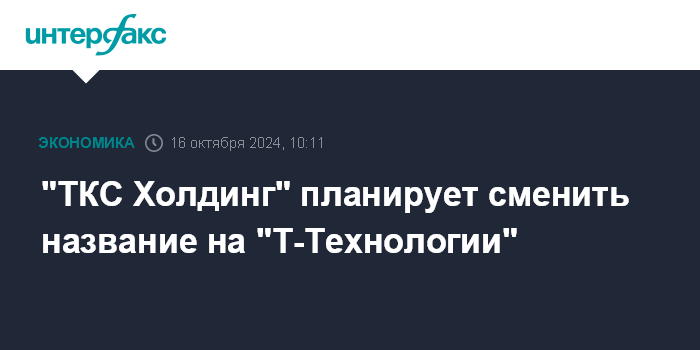 Москва. 16 октября. INTERFAX.RU - МКПАО "ТКС Холдинг" (головная компания Т-Банка и "Т-страхования") планирует сменить название на МКПАО "Т-Технологии", говорится в сообщении группы.