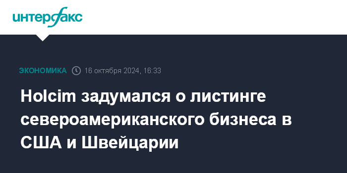 В январе Holcim заявила, что выделит североамериканские активы, на которые приходится около 40% всей прибыли группы, в отдельную компанию. Она может быть оценена более чем в $30 млрд. При этом планировалось, что ее акции будут размещены на американской бирже в первом полугодии 2025 года.
