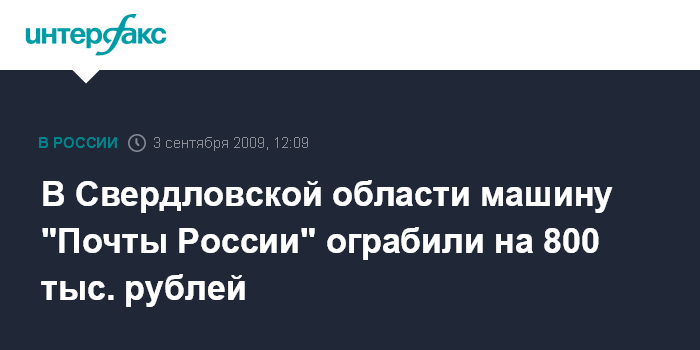 Екатеринбург. 3 сентября. INTERFAX.RU - В городе Верхней Пышме Свердловской области в четверг утром на улице Ленина совершено вооруженное нападение на служебную "Ниву" ФГУП "Почта России", перевозившую деньги.