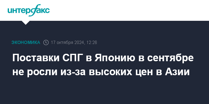 Поставки СПГ в Японию в сентябре не росли из-за высоких цен в Азии