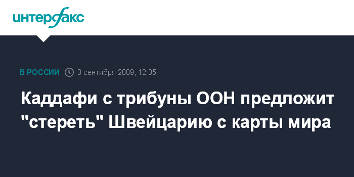 Каддафи с трибуны ООН предложит "стереть" Швейцарию с карты мира