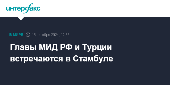 Москва. 18 октября. INTERFAX.RU - Главы МИД РФ и Турции Сергей Лавров и Хакан Фидан проводят встречу в Стамбуле, сообщили журналистам в МИД России.