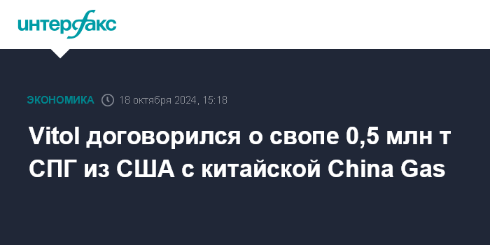 Москва. 18 октября. INTERFAX.RU - Швейцарский трейдер Vitol заключил долгосрочное соглашение о свопе с China Gas Hongda Energy Trading Co., LTD., сообщил трейдер.