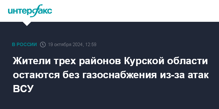 Жители трех районов Курской области остаются без газоснабжения из-за атак ВСУ