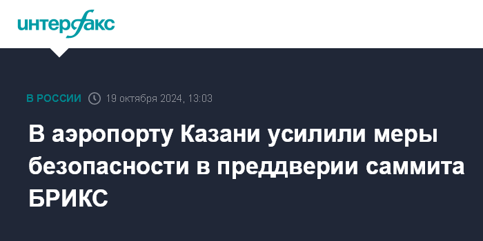 "В связи с проведением саммита БРИКС с 19 по 24 октября при подъезде к международному аэропорту "Казань" будут усилены мероприятия для обеспечения безопасности жителей и гостей столицы. В связи с этим могут проводиться досмотровые мероприятия", - говорится в сообщении.