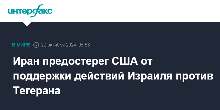 Москва. 22 октября. INTERFAX.RU - Представительство Ирана при ООН заявило, что США будут соучастником любой израильской агрессии против Тегерана.