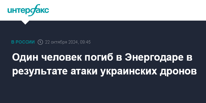 Один человек погиб в Энергодаре в результате атаки украинских дронов