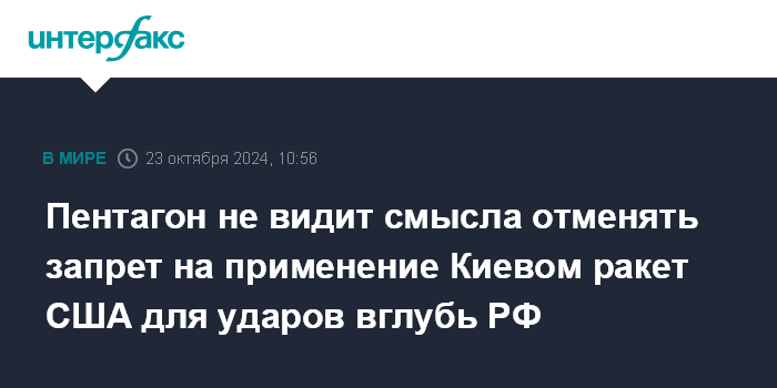 Пентагон не видит смысла отменять запрет на применение Киевом ракет США для ударов вглубь РФ